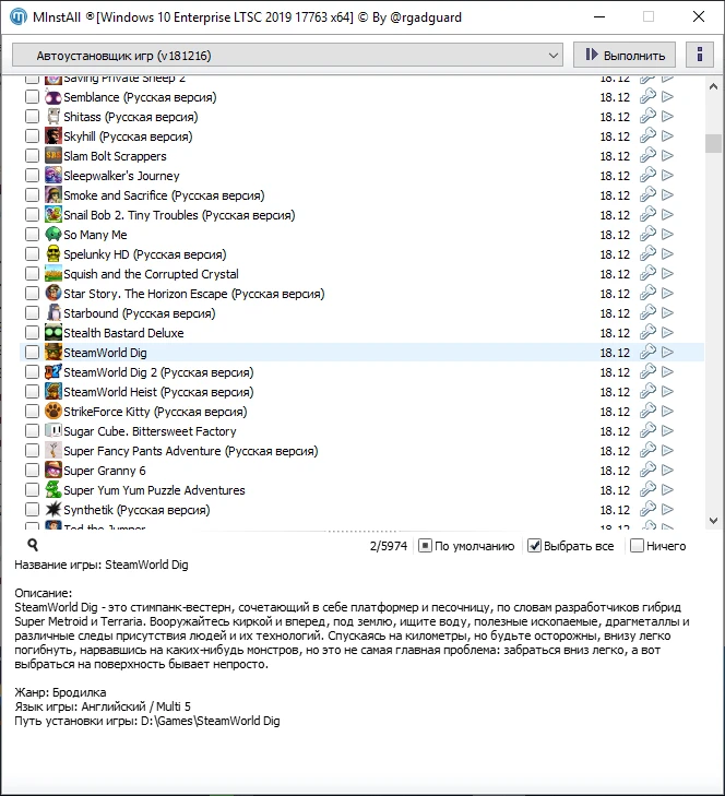 Сборник игр - Mini-Games [6346 шт.] (RUS|ENG|Multi) (1997-2019) PC | RePack by @rgadguard- Дата выхода: 20 Апрель 2019 г. Жанр: Аркада, Арканоид, Ассорти, Бродилка, Войнушки, Детский, Зуманоид, Карты, Логические, Маджонг, Мода, Настольные, Паззл, Пасьянс, Питомец, Поиск, Ресторан, Сим, Симулятор, Скроллер, Три в ряд, Ферма и другие Разработчик: Alawar Entertainment | Nevosoft | Big Fish Games | 8Floor Games и другие Издатель: Alawar Entertainment | Nevosoft | Big Fish Games | 8Floor Games и другие Издатель: в России: Alawar Entertainment | Nevosoft | TurboGames | MyPlayCity и другие Язык интерфейса: Русский / Английский / Multi Язык озвучки: Русский / Английский / Multi Язык субтитров: Русский / Английский / Multi Локализации: Alawar Entertainment | Nevosoft | Turbogames | Наша Версия и другие Версия: v181216 Тип издания: RePack Таблетка: Вшита (@rgadguard, casualgame, nasha-versiya, smallgames и другие)-