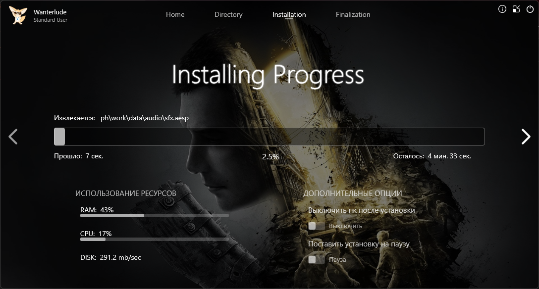• Наличие кириллицы и спецсимволов в путях к архивам репака и устанавливаемой игре недопустимы.