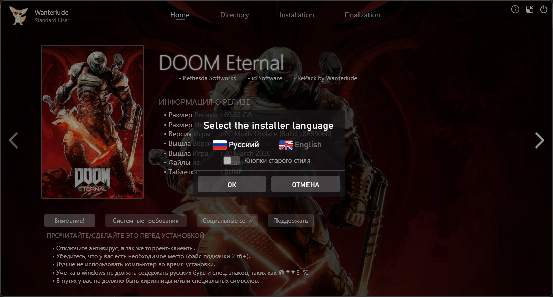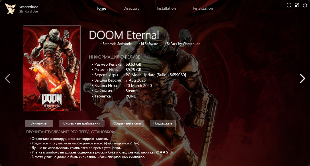 | Action | DOOM Eternal - Deluxe Edition [build 19435158 + DLCs] (2020) PC | Repack от Wanterlude | New-Games | 69.64 GB |