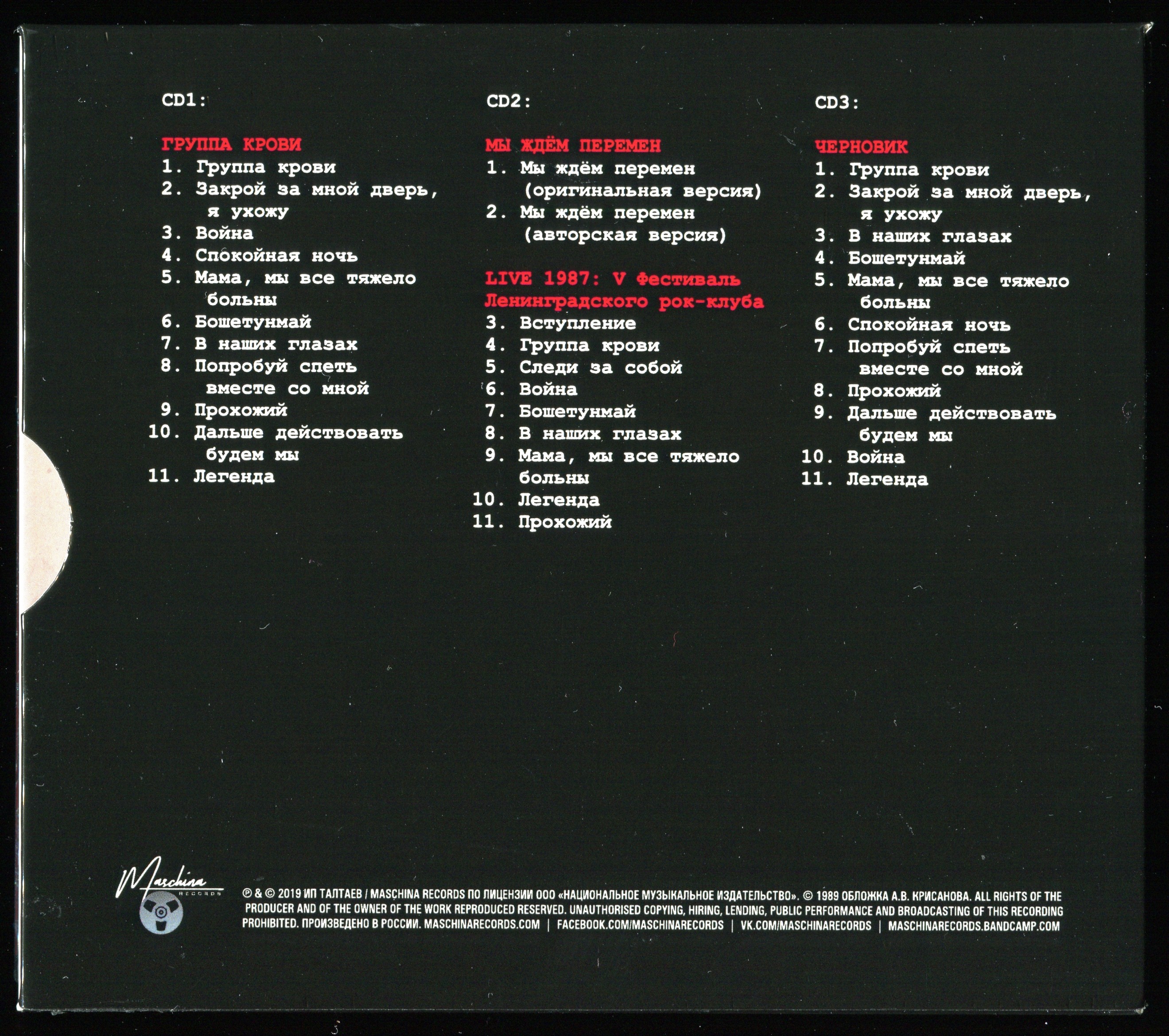 (Russian Rock) Кино - Группа крови (Maschina Records, 3CD - 1988) - 2019 [FLAC, image +.cue, lossless]
