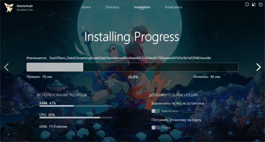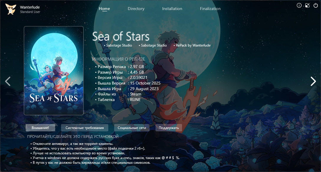 • Наличие кириллицы и спецсимволов в путях к архивам репака и устанавливаемой игре недопустимы.