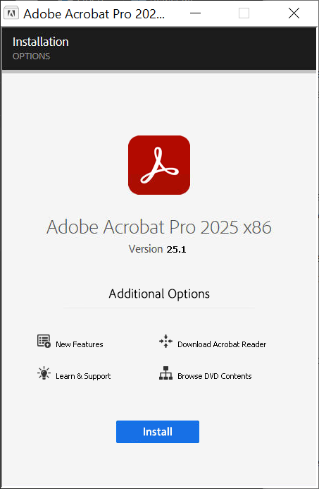 1.) Установите Adobe Acrobat Pro 2025 x86 (используйте autoplay.exe).