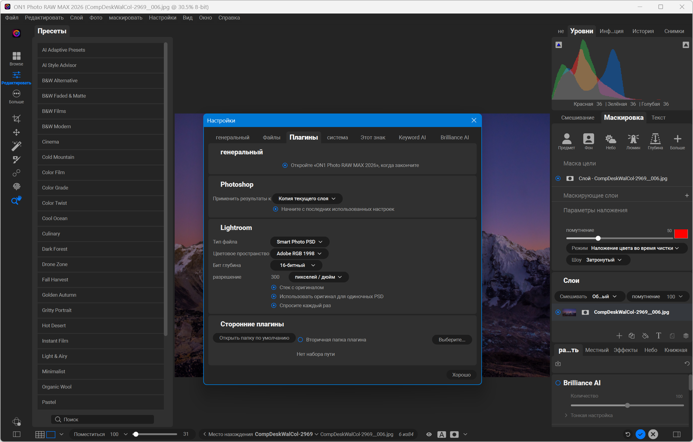 MAX Edition добавляет возможность запускать Photo RAW и все его инструменты как плагины из Adobe Ps/Lr, Apple Photos, Capture One, Affinity и Corel PSP (В портативной версии эта возможность отсутствует).