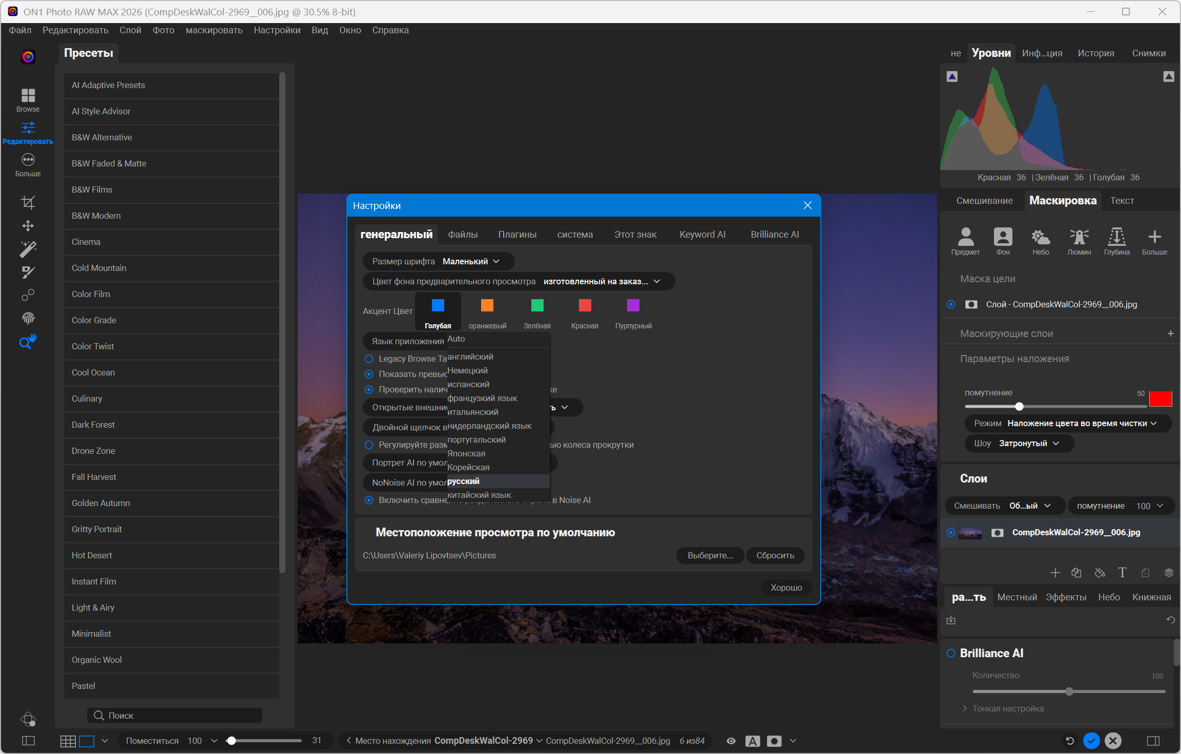 Доступ к интернету: при первом запуске программы скачивается около 5 ГБ модулей ИИ.-Описание: ON1 Photo RAW 2026 — лучший редактор фотографий в формате RAW для фотографов, ищущих альтернативу Photoshop и Lightroom без подписки. Это мощное программное обеспечение предлагает полный набор расширенных инструментов редактирования, включая функции на базе искусственного интеллекта, недеструктивное редактирование и точный контроль цвета. Благодаря поддержке файлов RAW с более чем 800 камер и совместимости с форматами JPEG, TIF, PSD и другими, оно подходит профессионалам, любителям и новичкам. ON1 Photo RAW 2026 также предоставляет функции организации фотографий, что делает его комплексным решением для редактирования, ретуширования и управления фотографиями в одном приложении.-
