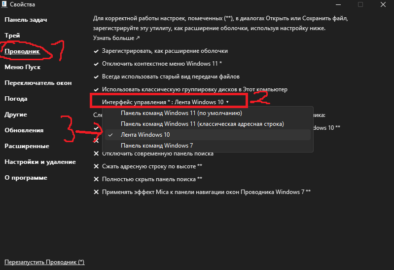 - Управление гибернацией, показом скрытых файлов и расширений.