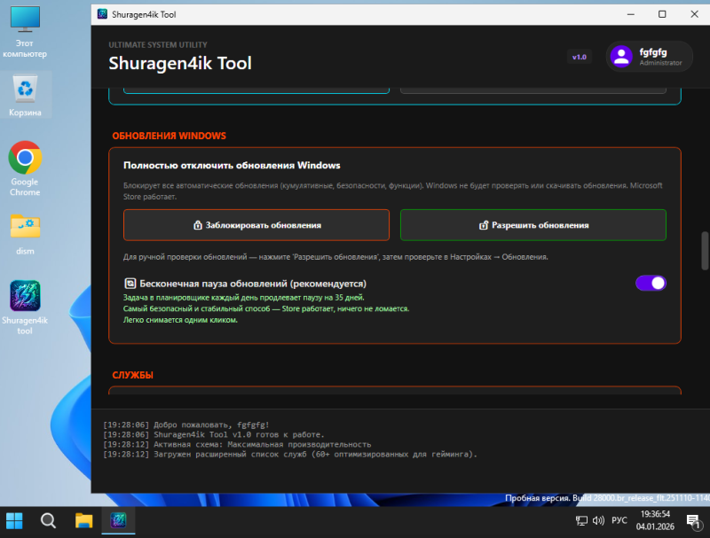 Большинство отключений сделаны через unattend.xml, PowerShell-скрипты и реестр — система максимально очищена и оптимизирована для игр/работы. Дополнительные настройки доступны через Shuragen4ik Tool
