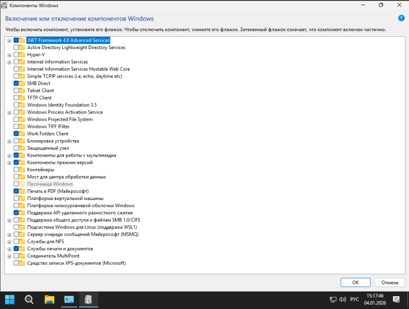 - Общий доступ к файлам (LanmanServer/LanmanWorkstation)