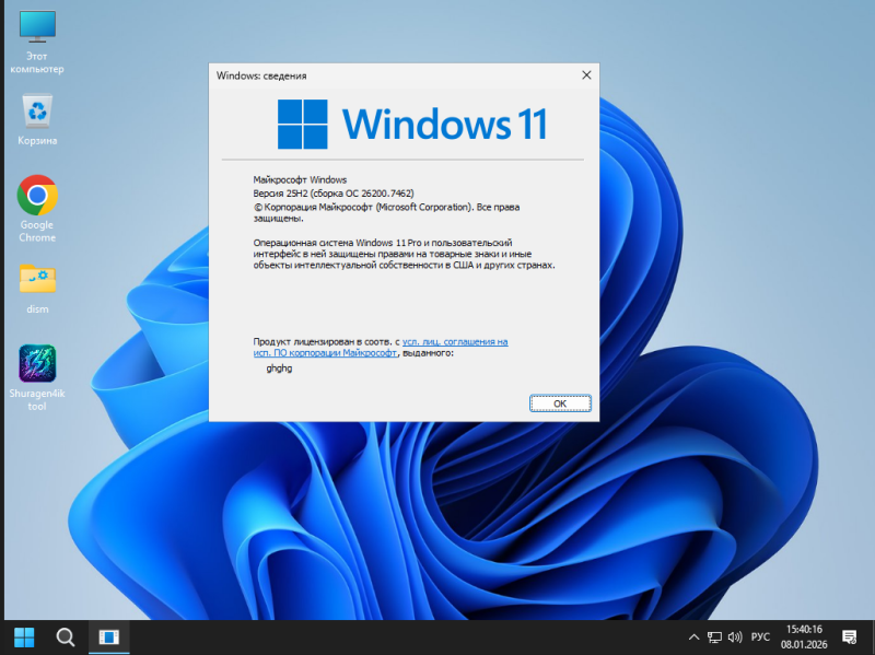 Windows 11 Pro 25H2 [26200.7462] Lite by Shuragen4ik (08.01.26)