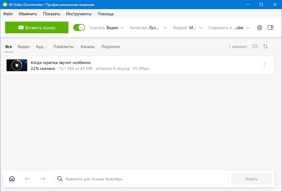 Тип лекарства: *.reg файл + активатор-Системные требования: Windows 11 64-бит и новее-Описание: 4K Video Downloader — неплохая утилита для скачивания видео, аудио и субтитров с YouTube. Конечно, есть всякие онлайн-сервисы для этого дела, но они не обеспечивают таких возможностей, которые есть в этой программе. Например, можно скачать целый канал, подписаться на скачивание новых видео, загружать плейлисты, а также импортировать список ссылок для скачивания. В настройках можно выбрать количество потоков, скорость скачивания, а также опции уведомлений.-