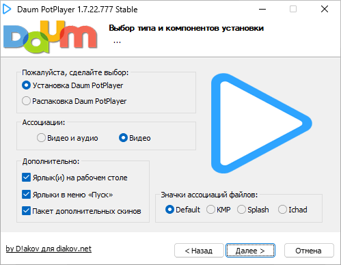 PotPlayer 1.7.22.777 Stable RePack (& Portable) by D!akov Многоязычные обычная и портативная версии в одном инсталляторе с автоматическим выбором разрядности ОС! Интегрирован пакет скинов-