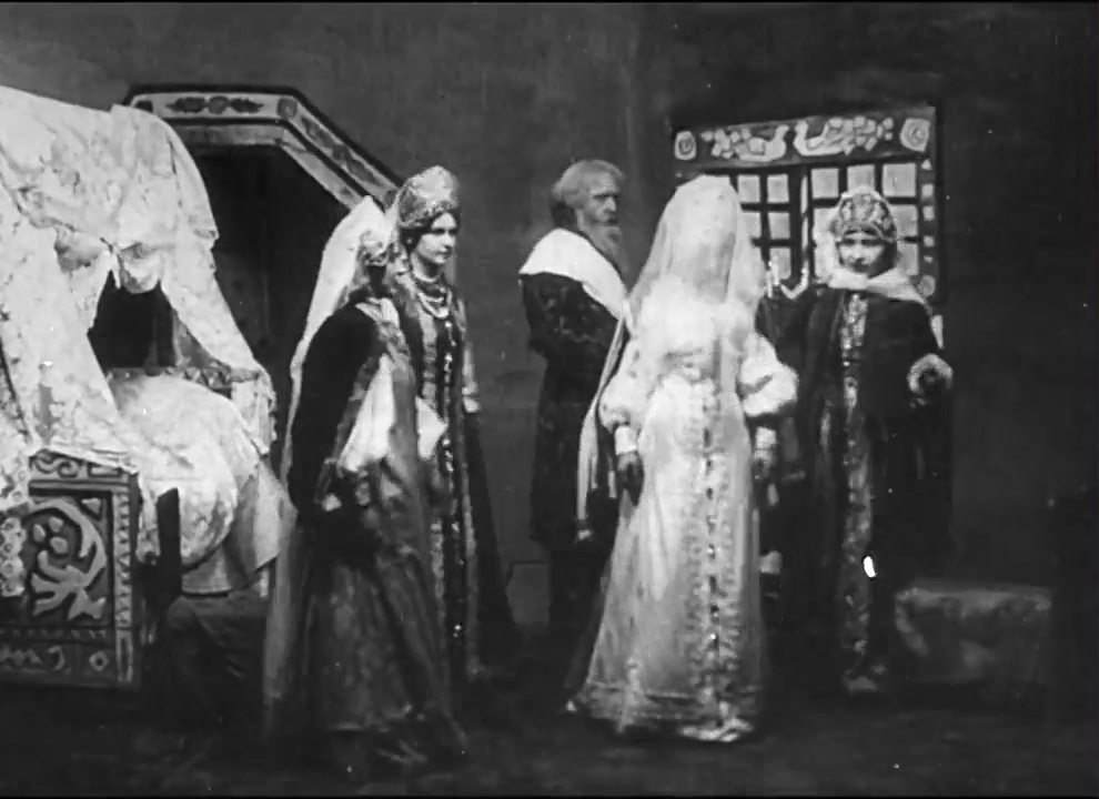Описание: Это один из первых фильмов в истории российского кинематографа. Он состоит из пяти этнографических картинок, в которых рассказывается о старинных свадебных традициях и обычаях. Работы художника-постановщика выполнены по сюжетам и художественной стилистики полотен Константина Маковского. В основу сюжета легли сцены из пьесы Петра Сухонина «Русская свадьба в исходе XVI века».