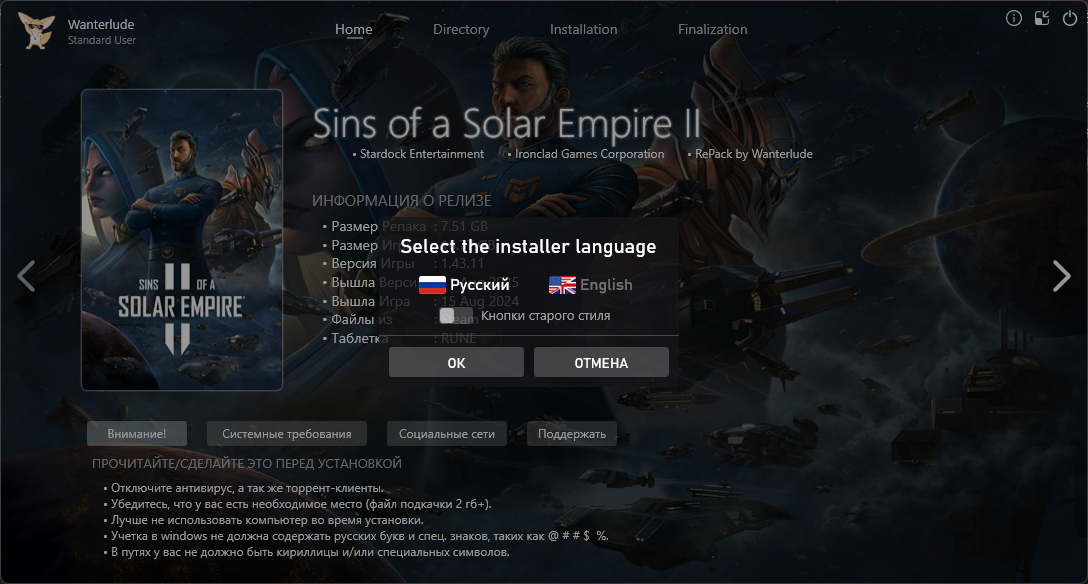 Sins of a Solar Empire II [v 1.43.11 + DLC] (2024) PC | RePack от Wanterlude [uztracker.net-34045].torrent