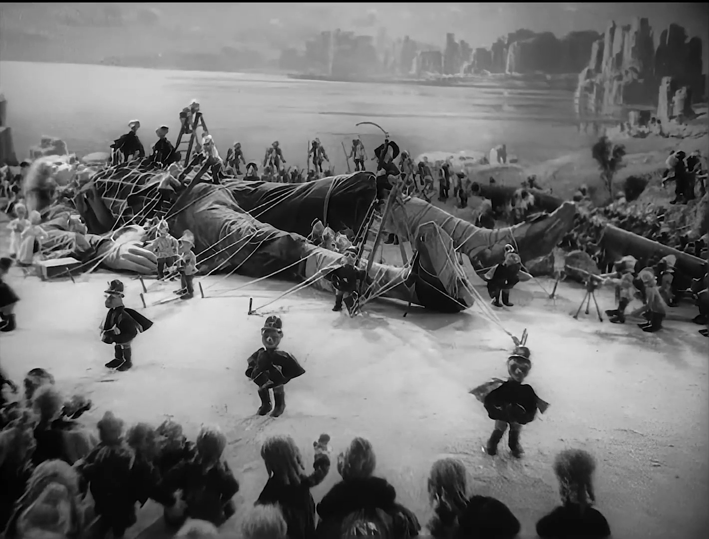 Новый Гулливер Производство: СССР / Мосфильм Жанр: сказка, мультфильм, фантазия, комедия Год выпуска: 1935 Продолжительность: 01:15:57 Режиссёр: Александр Птушко В ролях: Владимир Константинов, Иван Юдин, Иван Бобров, Фёдор Брест, Михаил Дагмаров, Борис Евгенев Описание: Пионер Петя, отдыхающий в Артеке, получил в подарок книгу "Путешествие Гулливера". Приключения "человека-горы" в стране лилипутов взволновали воображение пионера. Однажды, нечаянно заснув на берегу моря, Петя увидел себя во сне отважным путешественником Гулливером. Как и в книге, его корабль терпит крушение, и волна выбрасывает его на берег Лилипутии, где он попадает в плен к маленьким человечкам. Парламент Лилипутии решает сохранить Пете жизнь и даже принять его, как высокого гостя. Петя хочет узнать, как живет народ Лилипутии. Понятно, что рабочий класс Лилипутии угнетается правящими кругами, всю свою жизнь рабочие проводят в подземельях, изготавливая оружие. И вот пролетариат Лилипутии поднимает восстание. Конечно же Петя, как настоящий советский пионер, помогает повстанцам… Качество видео: WEBRip, AVC, 1080p Формат видео: MKV Видео: H.264 / AVC, 1420x1080, 30 fps, 6000 kbps Аудио: AC-3, 44,1 kHz, 2 ch, 192.00 kbps