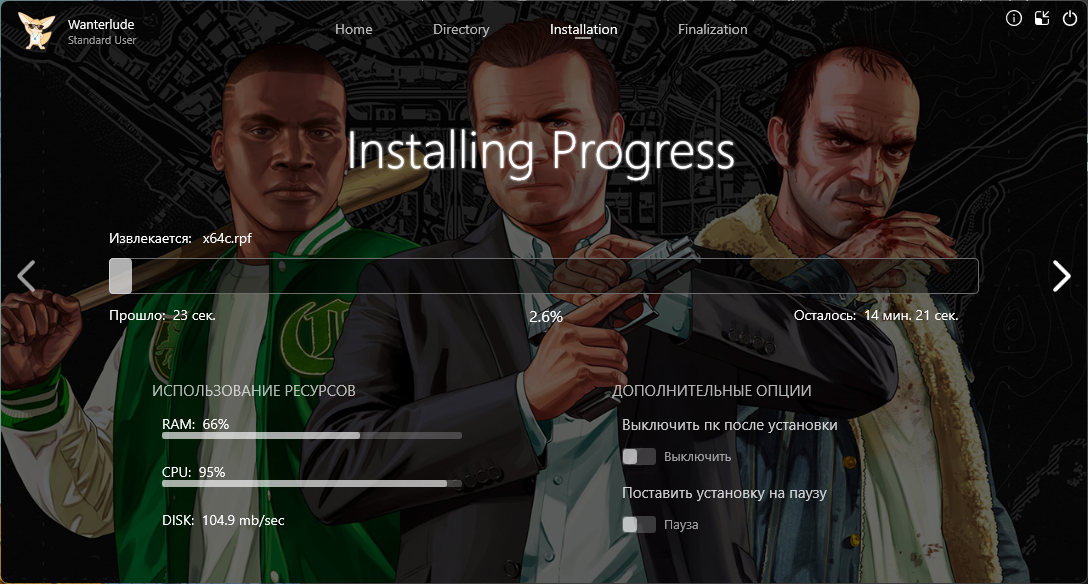 - Установка занимает ~15-35* минут [*Зависит от мощности вашего процессора]