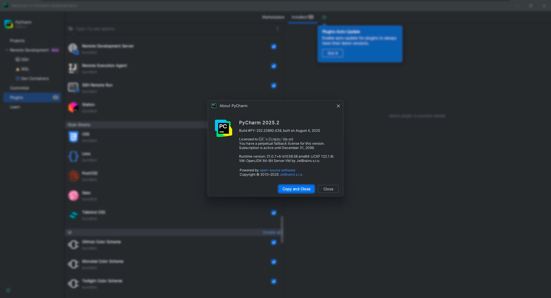 Используется новый активатор до 31 декабря 2099 года. Если у вас есть ещё какие-то IDE от JetBrains, с другими активаторами, придётся обновить все, потому что старые активаторы перестанут работать.