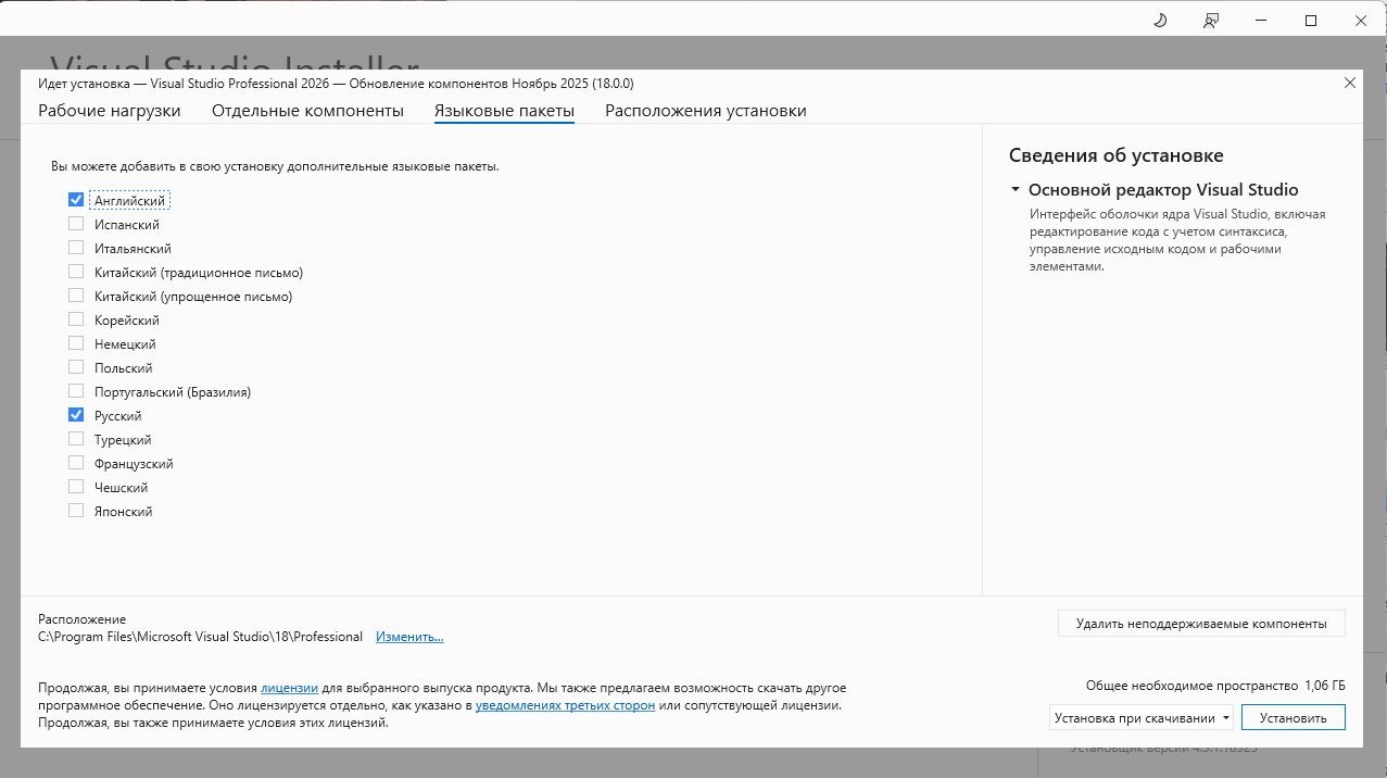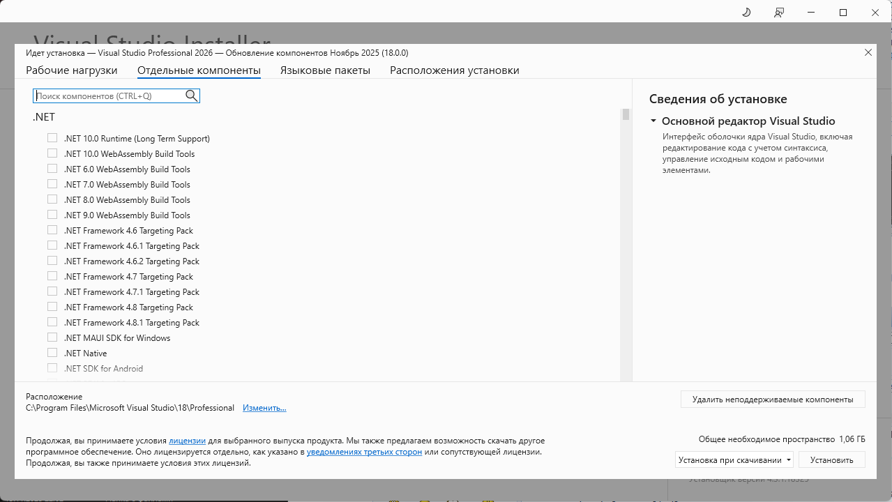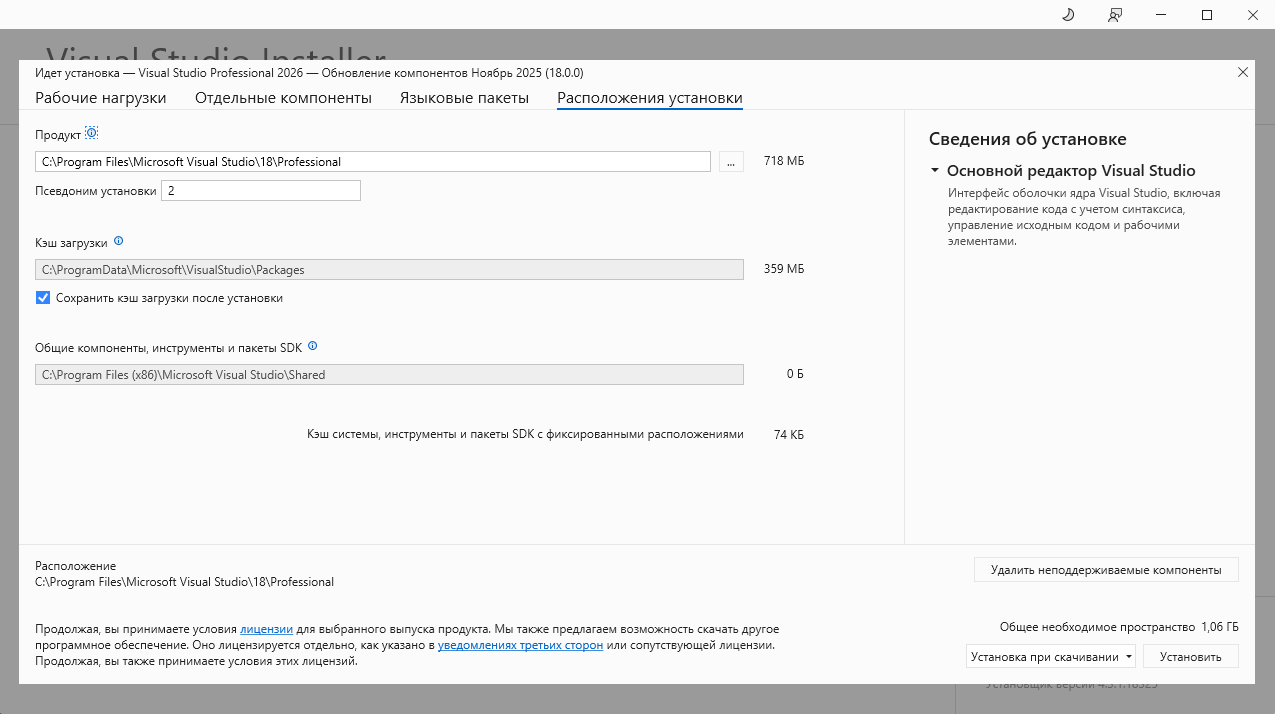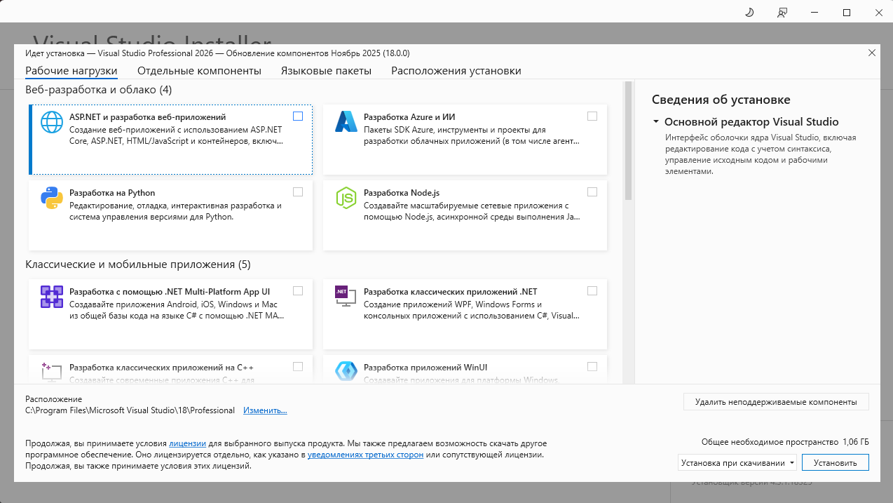 Microsoft Visual Studio 2026 Professional 18.0.0 [11205.157] (Offline Cache) [Ru/En]-Версия программы: 18.0.0 [11205.157] Официальный сайт: ссылка Язык интерфейса: Русский, Английский Лечение: в комплекте Тип лекарства: готовый серийник-Системные требования: Visual Studio 2026 поддерживается в следующих 64-разрядных операционных системах: Минимальная поддерживаемая версия ОС Windows 11 или выше: Home, Pro, Pro Education, Pro for Workstations, Enterprise и Education Минимальная поддерживаемая версия ОС Windows 10 или выше: Home, Professional, Education и Enterprise. Windows Server 2025: Standard и Datacenter. Windows Server 2022: Standard и Datacenter. Windows Server 2019: Standard и Datacenter. Не поддерживаются следующие варианты: 32-битные и ARM32 операционные системы. Visual Studio работает лучше всего в Windows 11 с 64 ГБ ОЗУ и ЦП с 16 ядрами или более. Он работает быстрее и более быстро реагирует, чем Visual Studio 2022 на одном оборудовании. Следующие продукты поддерживают минимальные требования к системе. Visual Studio Enterprise Visual Studio Professional Сообщество Visual Studio Средства сборки Visual Studio Visual Studio Team Explorer-Описание: Встреча Visual Studio 2026 - это один из самых амбициозных шагов вперед, которые мы предприняли в отношении IDE. В этом выпуске искусственный интеллект напрямую интегрирован в рабочий процесс разработчика, улучшена производительность, которая меняет ожидания относительно скорости в масштабах предприятия, а современный дизайн делает рабочую среду более легкой и целенаправленной. ИИ в Visual Studio 2026 не встроен, а встроен в повседневный ритм программирования. Представьте себе, что ИИ — это ваш тихий партнёр, который знает ваше решение, уважает вашу мышечную память и предлагает своевременную, а не навязчивую помощь. Вы заметите это, когда перейдете к новой кодовой базе, и IDE поможет вам разобраться в ситуации, подскажет, какие тесты обычно пишутся в вашем репозитории, и будет поддерживать соответствие документации и комментариев вашему коду. Вы почувствуете это, когда момент «вставки и исправления» станет единственным подтверждением, поскольку редактор адаптирует фрагмент к шаблонам и соглашениям вашего проекта. А когда возникнут вопросы по производительности, вам не придется гадать — рекомендации основаны на реальных трассировках и проверены бенчмарками, поэтому исправления приходят с уверенностью, а не с надеждой. Обзоры кода начинаются с чётких и применимых на практике данных о корректности, производительности и безопасности — на вашем компьютере, ещё до того, как вы откроете запрос на извлечение. Всё это время вы контролируете ситуацию . IDE берёт на себя всю рутинную работу, а вы сами принимаете решение . Результат прост: вы работаете быстрее, а ваш код становится лучше. Скорость определяет то, что вы можете создать за день. В 2026 году циклы, которые вы чаще всего запускаете — открытие решений, навигация по коду, сборка и нажатие F5 — становятся короче. Вы заметите, что первый запуск происходит быстрее, крупные решения кажутся легче, а время между идеей и запуском приложения продолжает сокращаться. Выигрыш заметен на больших кодовых базах и сохраняется как на x64, так и на Arm64, так что мощность вашего компьютера напрямую влияет на скорость разработки.-