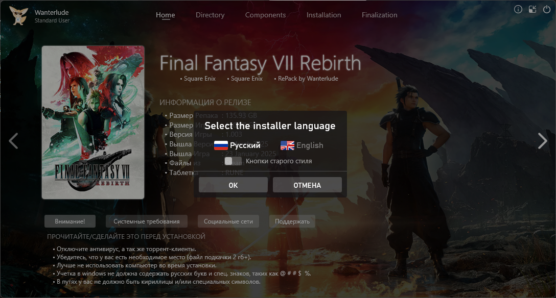 Final Fantasy VII Rebirth [v 1.004 + DLCs] (2025) PC | RePack от Wanterlude [uztracker.net-43220].torrent