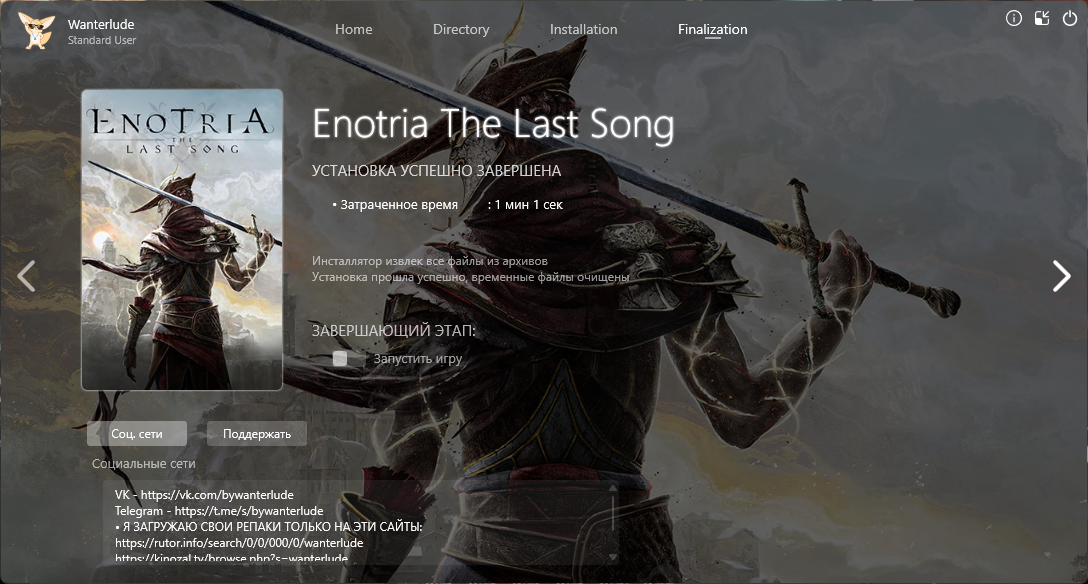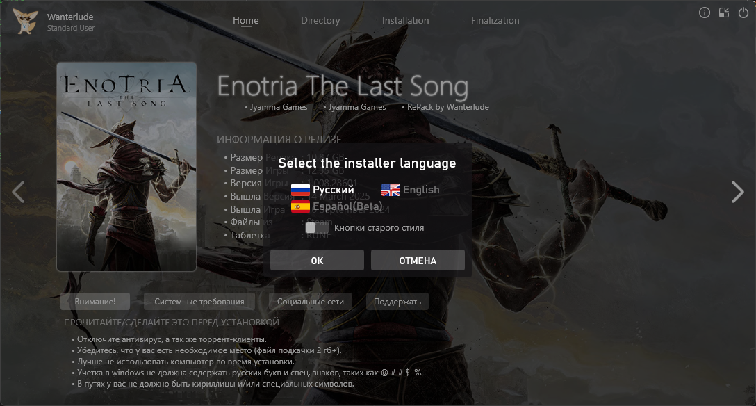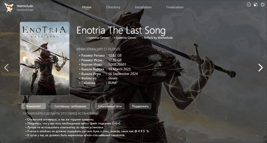 • Наличие кириллицы и спецсимволов в путях к архивам репака и устанавливаемой игре недопустимы.