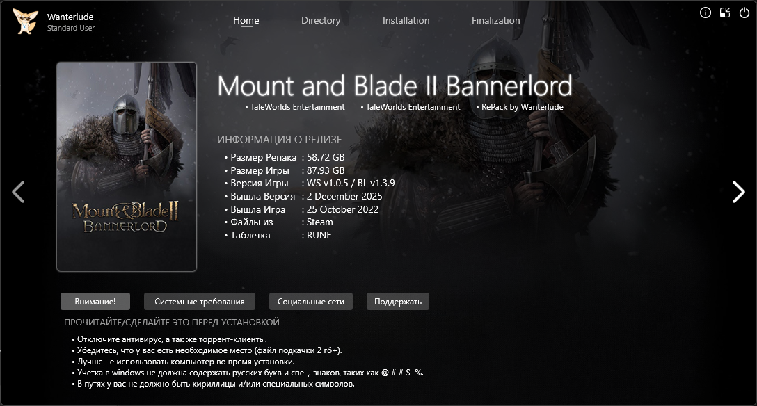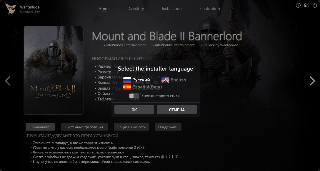 • Наличие кириллицы и спецсимволов в путях к архивам репака и устанавливаемой игре недопустимы.
