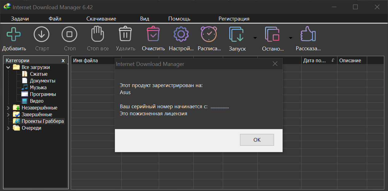 Название: Internet Download Manager Разработчик: https://www.internetdownloadmanager.com/ Год: 2025 Платформа: PC Версия: 6.42 Build 57 Язык интерфейса: Русский, Английский и другие Таблетка: Включено Crack Системные требования: Windows 11, 10, 8.1, 8, 7. 64-bit versions. Описание: Internet Download Manager — это менеджер загрузок для Windows, который позволяет оптимизировать, организовывать и ускорять загрузки из любого браузера или с любого сервера. Благодаря интеллектуальной системе сегментирования вы можете увеличить скорость загрузки даже при медленном или нестабильном подключении к сети. Более того, программа совместима со всеми основными веб-браузерами и автоматически перехватывает любые ссылки на загрузку.