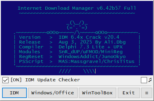 1.) - Запустите программу установки «idman642build57.exe». 2.) - Скопируйте файл «IDM_6.4x_Crack_v20.4.exe» в папку установки и активируйте. 3.) - Наслаждайтесь.