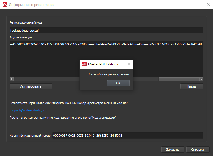 ЭскизВернуться к регистрации в программе, ввести Активационный код и нажать Активировать. Если всё сделали правильно, то должны получить следующий результат: