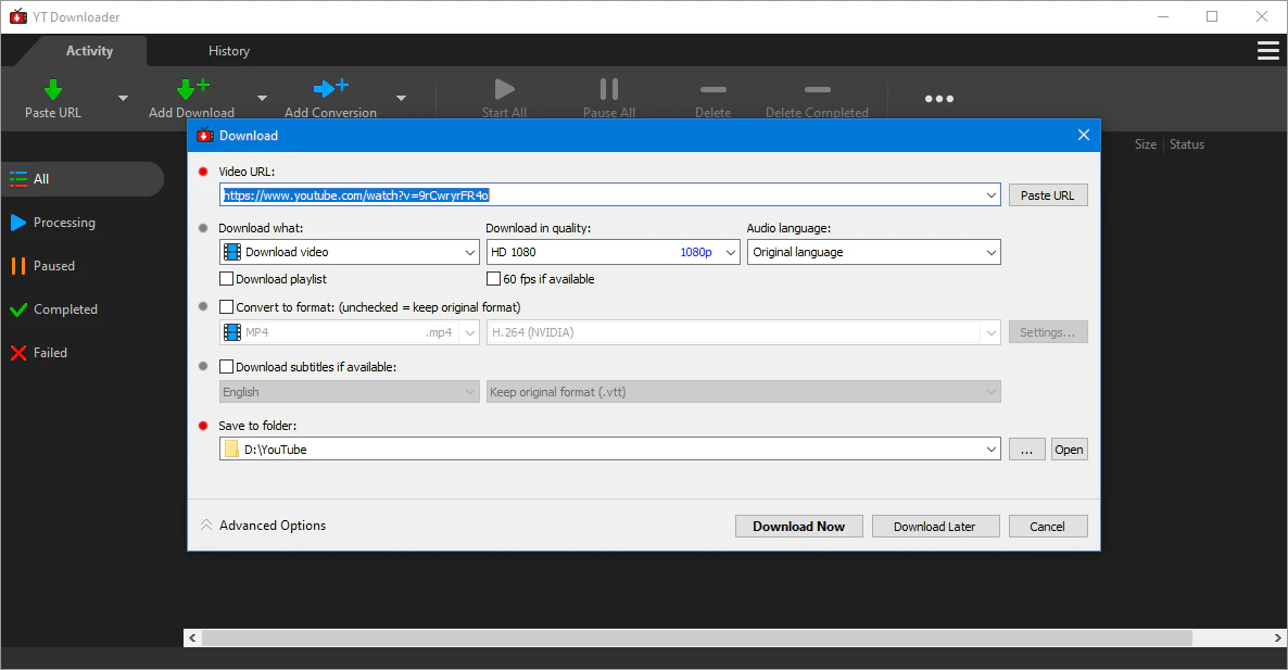 YT Downloader 10.1.6 [En]-Версия программы: 10.1.6 Официальный сайт:ссылка Язык интерфейса: Английский Лечение:в комплекте Тип лекарства: замена файлов-Системные требования: Windows 7 – 11 (x64)-Описание: YTDownloader – простая в использовании программа для загрузки и просмотра видео с популярных сервисов. Программа позволяет скачивать видео контент из таких сервисов, как YouTube, Facebook, Google Video, Yahoo Video и тому подобных. YTD дает возможность конвертировать видео в форматы MP4, AVI, 3GP, WMV и в форматы для просмотра на iPod, iPhone, PSP и других устройствах. Программа способна воспроизводить скачанные видеофайлы при помощи встроенного проигрывателя.-