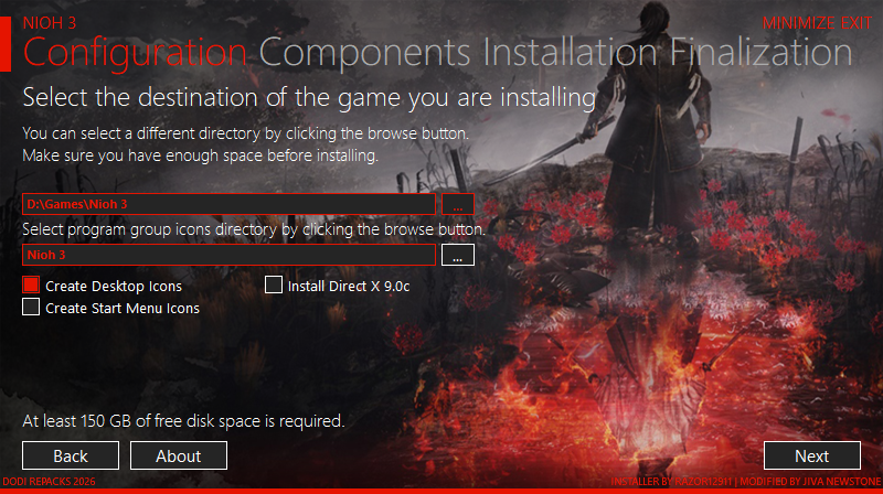 -Год выпуска: 6 февраля 2026 Жанр: Action / Adventure / RPG Разработчик: KOEI TECMO GAMES CO., LTD. Издатель: KOEI TECMO GAMES CO., LTD. Платформа: PC-Тип издания: RePack Язык интерфейса: Русский / Английский / MULTi12 Язык озвучки: английский, японский Версия: v1.02 / v1.03 Таблетка: Присутствует (TENOKE / RUNE / 0xdeadc0de)-СИСТЕМНЫЕ ТРЕБОВАНИЯ:-Минимальные системные требования: - Требуются 64-разрядные процессор и операционная система - ОС: Windows 10 / 11 - Процессор: Intel Core i5-10400 / AMD Ryzen 5 2600 - Оперативная память: 16 GB ОЗУ - Видеокарта: NVIDIA GeForce GTX 1060 VRAM 6GB / AMD Radeon RX 5600 XT, DirectX 12 - Место на диске: 115 GB-ОПИСАНИЕ ИГРЫ:-В третьей части мрачного ролевого экшена Nioh вам предстоит сочетать стили самурая и ниндзя в сражениях против ёкаев, исследуя захватывающие открытые зоны.-