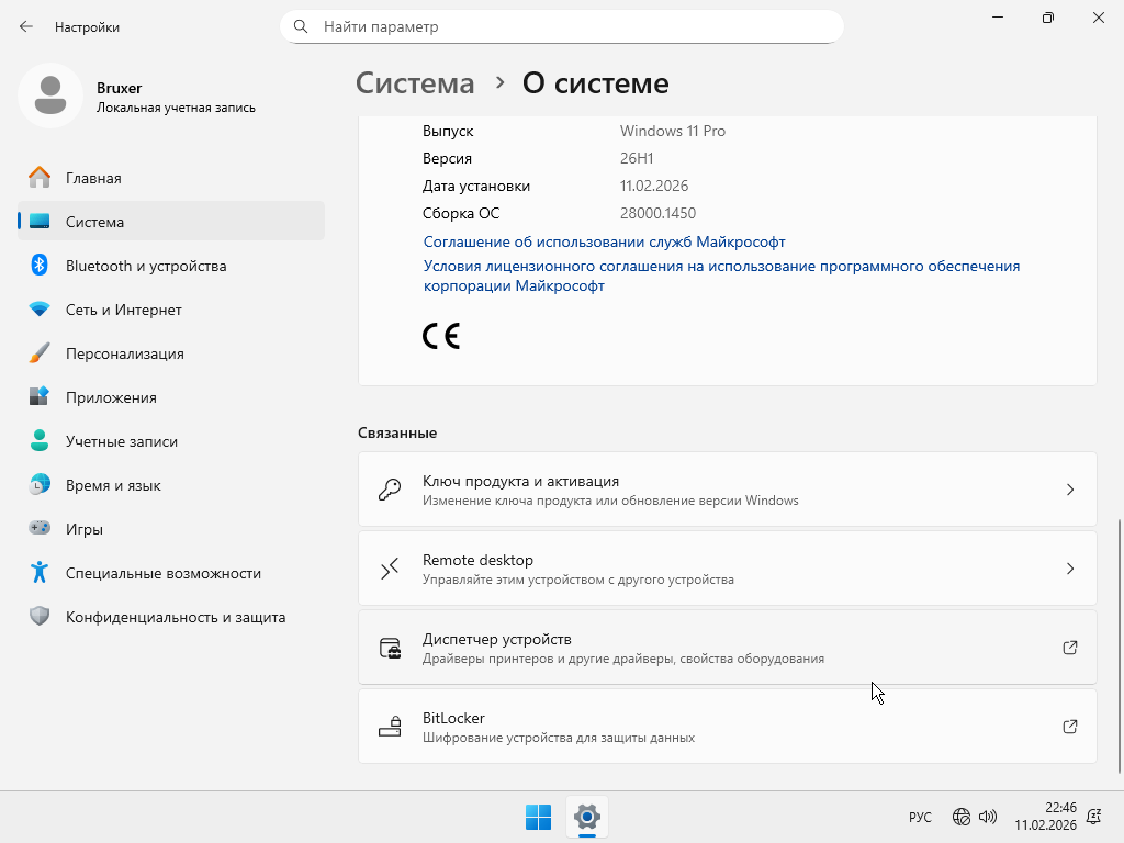 Windows 11 Pro 26H1 Lite (build 28000.1450) x64 by Bruxer [RU]