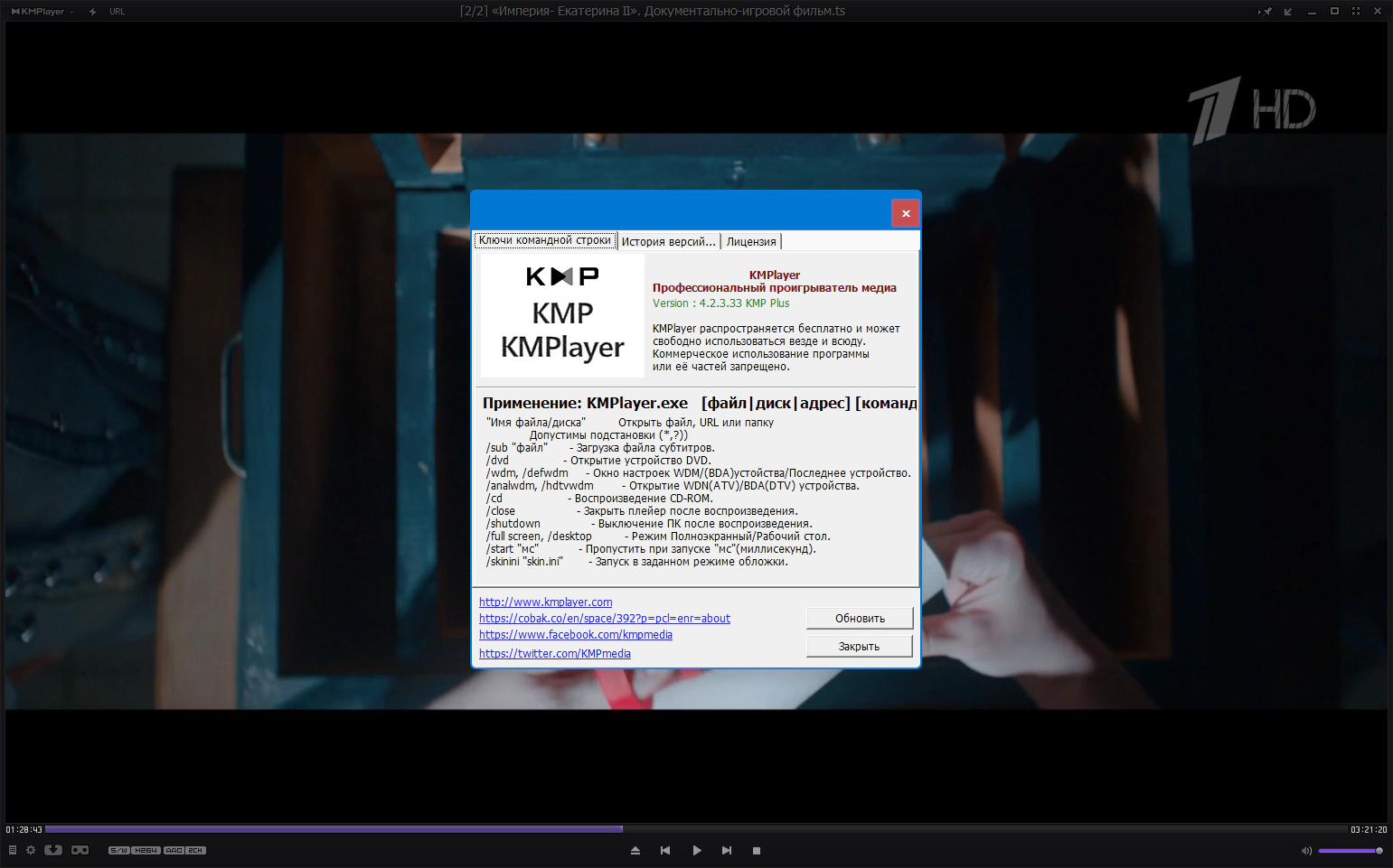 Версия программы: 4.2.3.33 Официальный сайт: kmplayer.com Язык интерфейса: Русский, Английский, другие Лечение: не требуется-Системные требования: ОС: Windows 11 / 10 / 8.1 / 8 / 7 (64-bit) Жесткий диск: 300 Мб ОЗУ: 1 GB, для SVP 2GB ЦП: Intel Core2Duo и выше Видеокарта: DirectX 9.0 VRAM 256 MB Разрешение: 1024 x 768 и выше-Описание: The KMPlayer – это мощный мультимедиа проигрыватель, предназначенный для воспроизведения аудио/видеофайлов практически всех возможных форматов. Убедиться в этом и испытать его в работе очень просто - достаточно скачать KMPlayer и запустить, никакие дополнительные установки не нужны, тем более, что такие кодеки, как DVD, AVI, VCD, Ogg, MKV, mp3, OGM, 3GP, MPEG-1/2/4, WMV, RealMedia, FLV и QuickTime в KMPlayer уже встроены. Плеер наделён потрясающим дизайном, интуитивным интерфейсом, абсолютным разнообразием настроек и функций. Всё это позволяет создать индивидуальное внешнее оформление и настроить воспроизведение мультимедиа контента так, что это будет полностью соответствовать вашим личным предпочтениям. Вполне вероятно, что с KMPlayer ощущения от просмотра фильмов и прослушивания музыки станут гораздо ярче!-Основные возможности KMPlayer:Плейлист сохраняется при каждом выключении и включении медиаплеера Программа может автоматически регулировать громкость при воспроизведении «тихих» файлов Одна из важнейших особенностей KMPlayer – это проигрывание дефектных и не полностью загруженных файлов Функция сохранения точки воспроизводимого файла позволяет вернуться к просмотру видео с того фрагмента, на котором воспроизведение закончилось в предыдущий раз Вести запись воспроизводимого звука Запускать визуальное сопровождение аудио файлов Активировать обработку аудио. Данная функция позволяет исключить затишье между проигрываемыми треками, плавно переключая их Просматривать видеофайлы в формате 3D.Особенности Portable:Портативная версия от 7997, работает без инсталляции на ПК Не требует регистрации Язык интерфейса: Русский, Английский, другие Не оставляет следов в системе и реестре Добавляется в hosts и удаляется при завершении работы: 127.0.0.1 gplayer.kmpmedia.net 127.0.0.1 cdn.kmplayer.com Папки «Capture» и «PlayList» при завершении перемещаются из "KMPlayer\App\KMPlayer" в "KMPlayer" Папки «Capture» и «PlayList» удаляются, если пустые. -