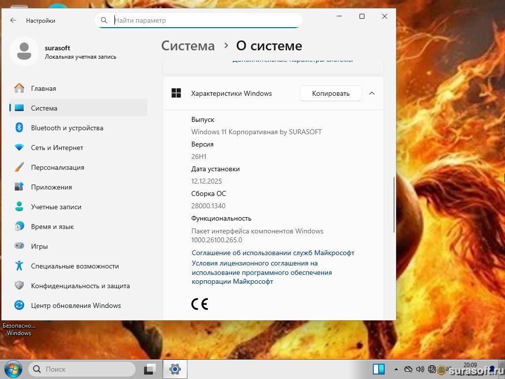 Windows 11, Version 26H1 with Update [28000.1340] AIO (x64) by SURASOFTВерсия программы: 28000.1340 Автор сборки:sura soft Язык интерфейса: Русский Лечение:таблетка Системные требования: Процессор: Не менее двух ядер с тактовой частотой не менее 1 гигагерца (ГГц) на совместимом 64-битном процессоре или Системе на кристалле (SoC). ОЗУ: 4 ГБ и больше (отключена проверка) Хранилище: Устройство хранения на 64 ГБ или больше (отключена проверка) Cистемная прошивка: UEFI, с поддержкой безопасной загрузки (отключена проверка) TPM: Доверенный платформенный модуль (TPM) версия 2.0 (отключена проверка) Графический адаптер: Графический адаптер, совместимый с DirectX 12 / WDDM 2.x. Дисплей: > 9 дюймов с разрешением HD (720p) Интернет-соединение: Для установки Windows 11 домашняя требуется учетная запись Майкрософт и подключение к Интернету. (отключена проверка) Описание: Сборка сделана на основе оригинальных файлов UUP. Были интегрированы обновления по 10 декабря 2025 года.